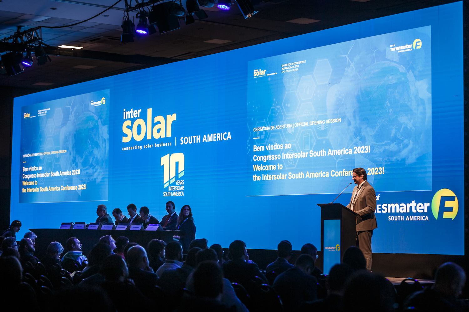 The smarter E South America 2024 Conferences Intersolar, ees, Power2Drive and Eletrotec+EM-Power, aim to set the benchmark for the renewable energy industry. They address market development, technical and regulatory challenges and opportunities, and feature expert presentations on a variety of topics including solar energy, grid infrastructure, energy storage, green hydrogen and electric mobility.